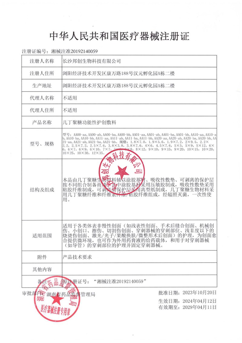 幾丁聚糖功能性護(hù)創(chuàng)敷料-注冊(cè)證
