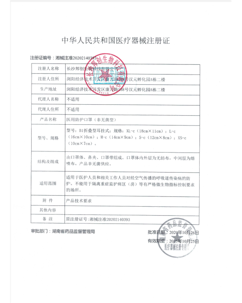 醫(yī)用防護口罩(非無菌型)--注冊證