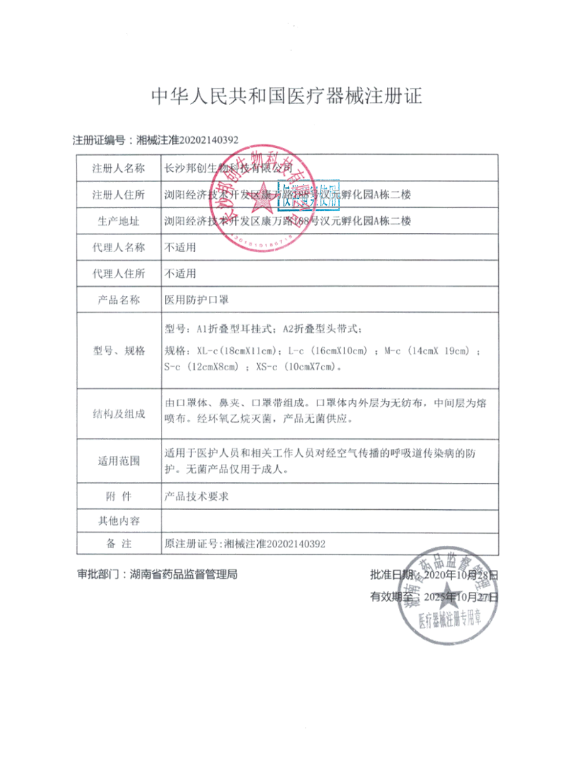 醫(yī)用防護(hù)口罩(無菌型)--注冊(cè)證