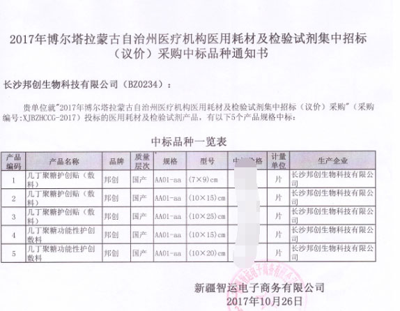 恭賀我公司產(chǎn)品在2017年新疆博爾塔拉蒙古自治州醫(yī)用耗材招標(biāo)采購項目中標(biāo)